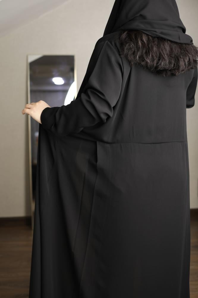 عباية "أناقة" باللون الأسود مع الأكمام المطوية هي الخيار المثالي لكل من ترغب في إطلالة أنثوية وراقية. تصميمها الفاخر يجمع بين البساطة والتفاصيل الدقيقة لتمنحكِ راحة وأناقة في كل مناسبة.
